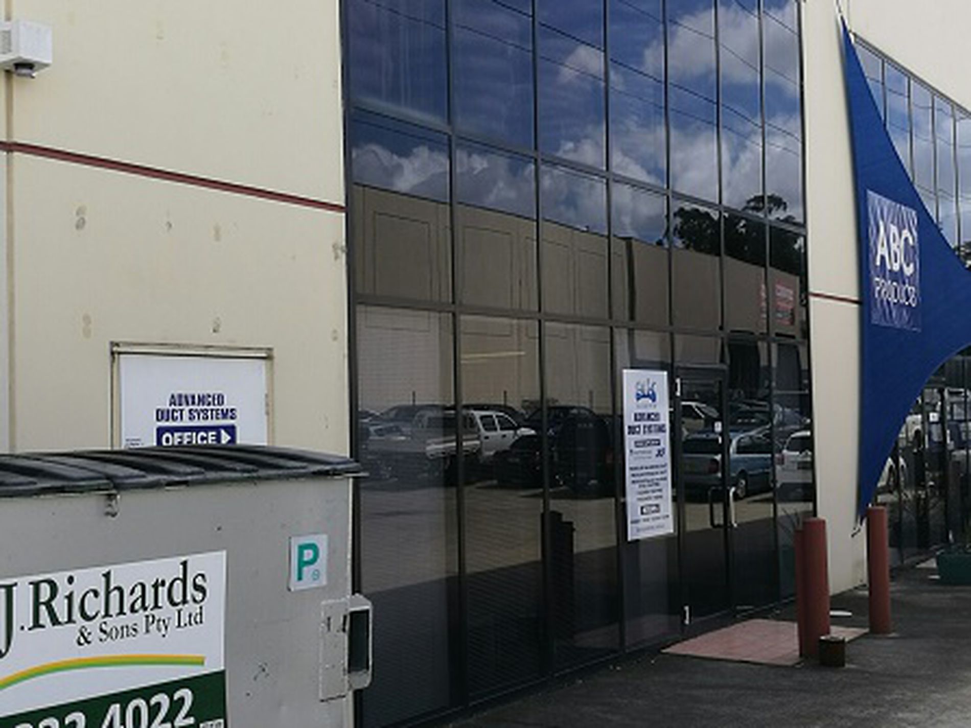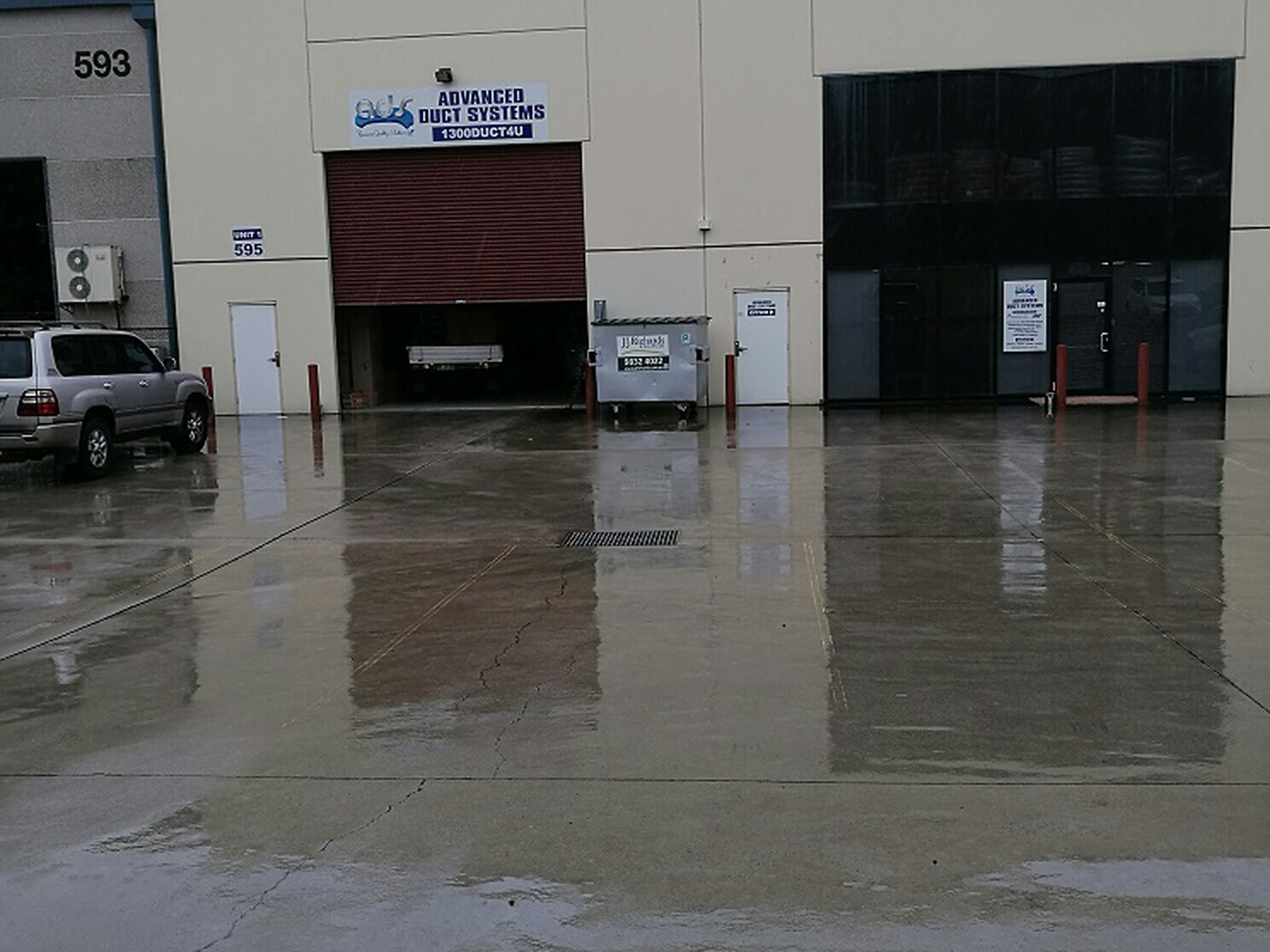 Modern industrial unit part of a duplex provides access via one container sized roller door.