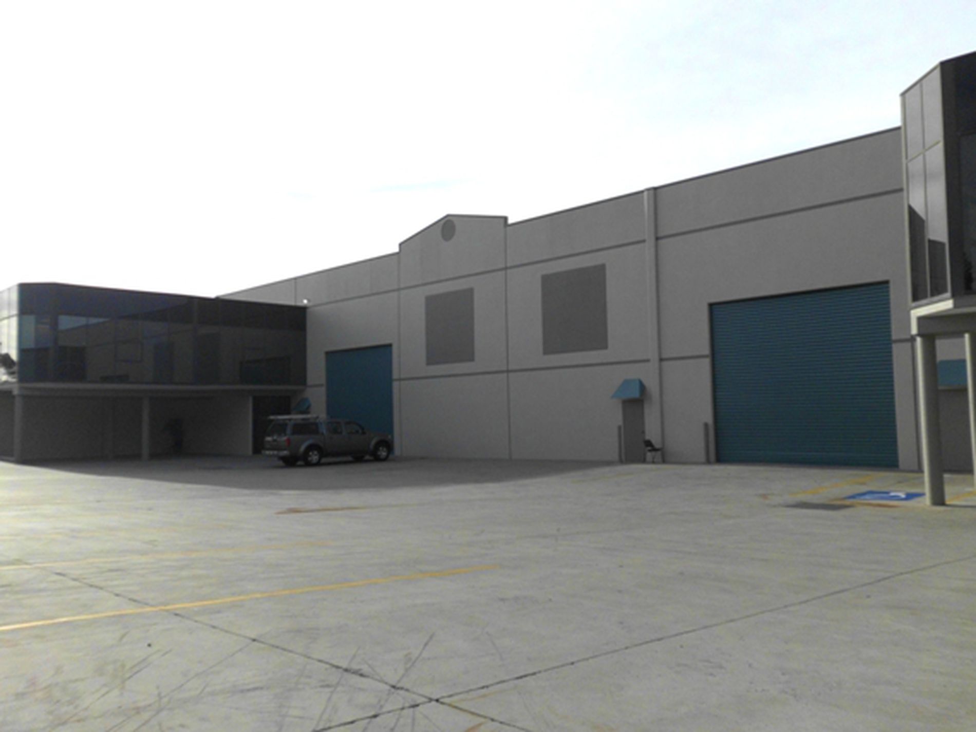 Freestanding warehouse/office facility providing easy container access via dual roller shutter doors.